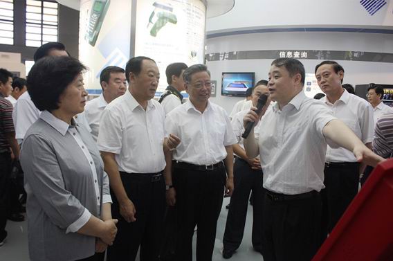 在新大陸展示廳中,胡鋼董事長及王晶總裁向考察團領導們詳細介紹了新大陸的科研成果,領導們深入了解并體驗新大陸在環保、IT領域的核心技術和行業應用。當考察到新大陸物聯網領域領先的核心技術與首創商業模式時,蘇書記饒有興趣的追問有關二維碼的原理與應用情況,對新大陸電子憑證的創新模式表示贊